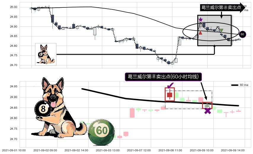 ⚀ 2021-09-09 09:00:00-小时显现 葛兰威尔均线 60小时均线 第⑧卖出点 下降趋势的中继信号,后市看跌,卖出信号