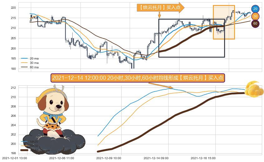 形态多维评估: ⚀ 2021-12-07 14:00:00小时-2021-12-21 09:00:00小时显现 20小时-30小时-60小时均线 【烘云托月】买入点 看多信号,后市看涨,买入