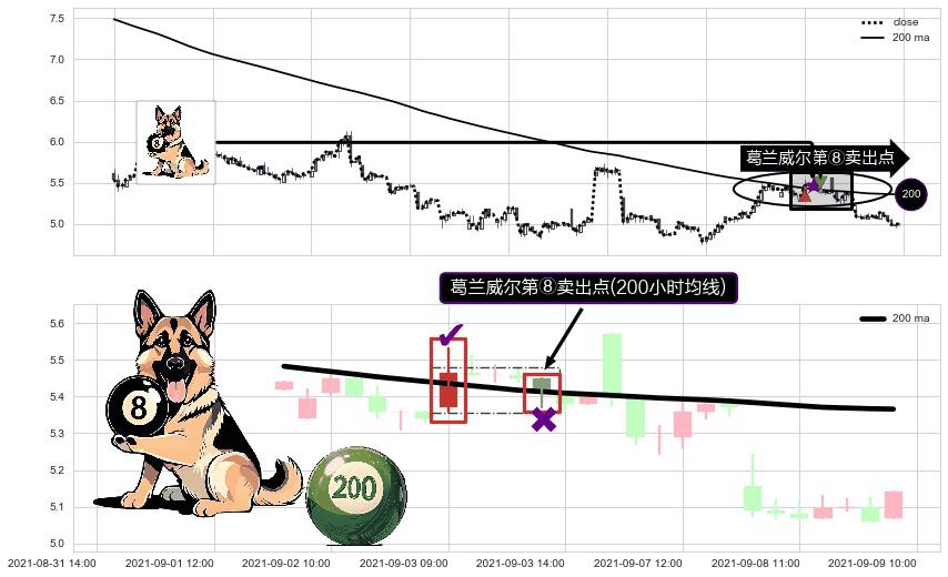 形态多维评估: ⚀ 2021-09-03 13:00:00-小时显现 葛兰威尔均线 200小时均线 第⑧卖出点 下降趋势的中继信号,后市看跌,卖出信号