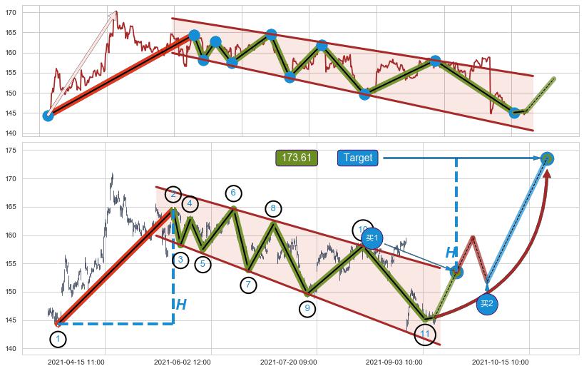➢ AI预测: 假定反转启动后, 第❷目标位置(02-14:14, 153.87)