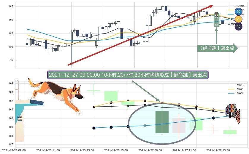 ⚀ 2021-12-27 09:00:00小时显现 10小时-20小时-30小时均线 【绝命跳】卖出点 看空信号,后市看跌,卖出