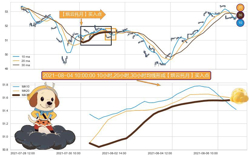 ⚀ 2021-07-30 12:00:00小时-2021-08-06 14:00:00小时显现 10小时-20小时-30小时均线 【烘云托月】买入点 看多信号,后市看涨,买入