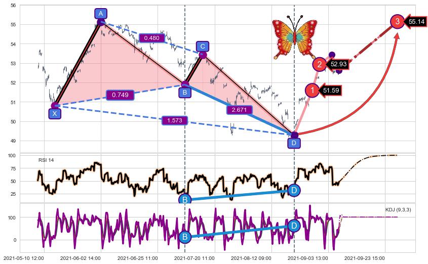 ➣ 已完成【蝴蝶】形态起点X: 05-13:12, 终点D: 08-20:13, 共422交易小时