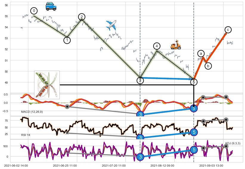 ➢ a,c调整浪MACD, RSI, KDJ走势都【未出现】背离,abc走势延续, 5浪反转概率增强