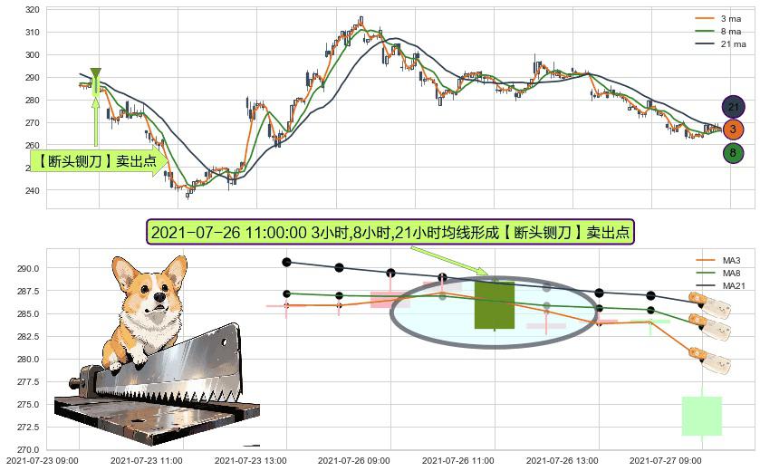 形态多维评估: ⚀ 2021-07-26 11:00:00小时显现 3小时-8小时-21小时均线 【断头铡刀】卖出点 看空信号,后市看跌,卖出
