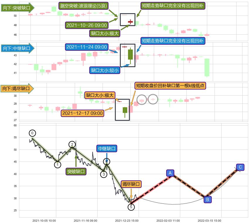 ➢ 2021-12-17 09:00形成:向下跳空【竭尽】缺口