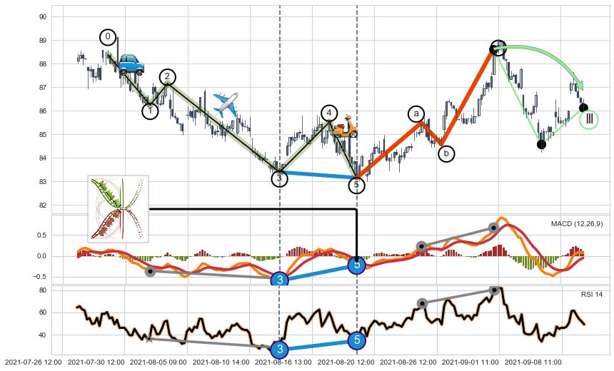 ➣ a,c调整浪MACD, RSI, KDJ走势都【未出现】背离,abc走势延续, 5浪反转概率增强