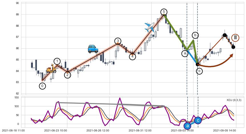 从2021-08-30 10:00至2021-09-07 10:00,共包含32个小时,阶段股价下跌-0.98%,阶段股价变动位移路程比: 1 : 14