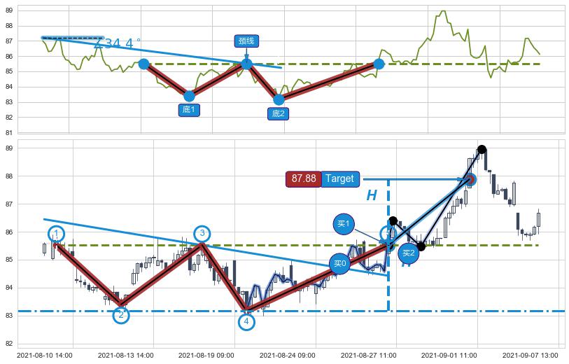 ➣ 【买2】: 保守型 买点 →(08-27:14: 85.64 )形成双重底突破后的【回抽确认】