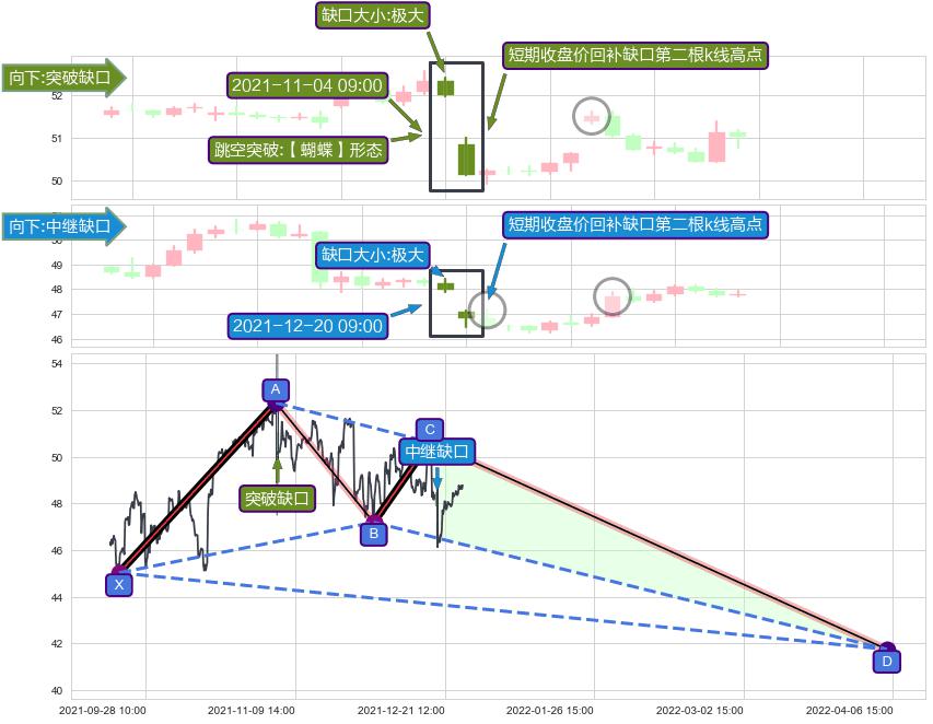 ➢ 【蝴蝶】形态 🔜 中继缺口 🔜 突破缺口 综合量化分数:47.96 【中性】