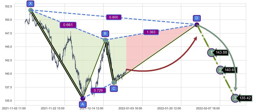 ➣ D点拟合预测价格149.11,距离最后交易收盘价格140.79相差 +5.91%