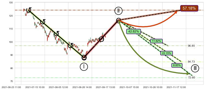 ➣ 大趋势循环浪继续向下概率42.82%