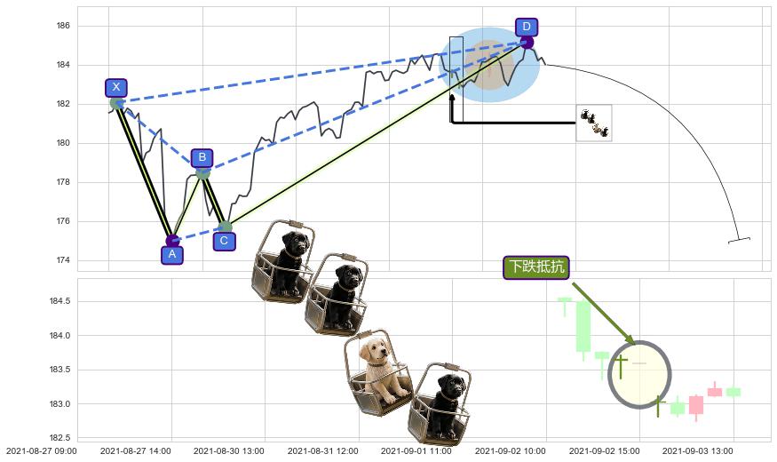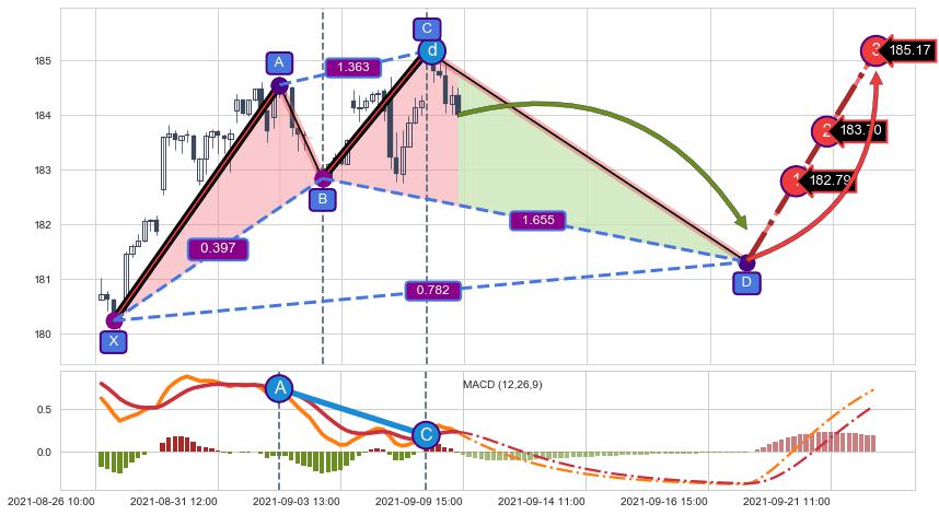 ➣ D点拟合预测价格181.31,距离最后交易收盘价格184.00相差 -1.46%