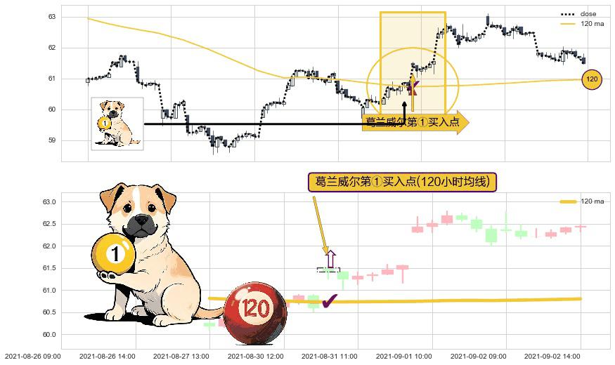 ⚀ 2021-08-31 09:00:00-小时显现 葛兰威尔均线 120小时均线 第买①入点 走势反转见底信号,后市看涨,买进信号