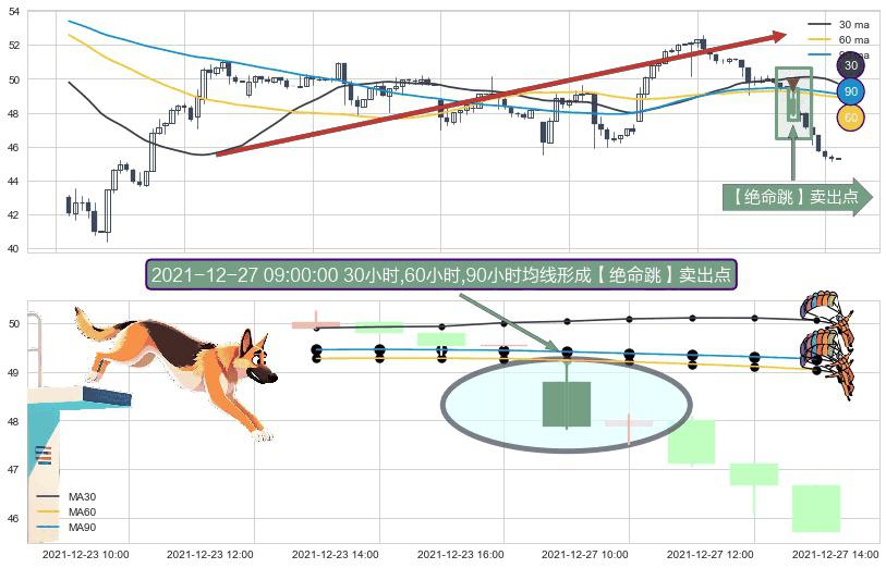 形态多维评估: ⚀ 2021-12-27 09:00:00小时显现 30小时-60小时-90小时均线 【绝命跳】卖出点 看空信号,后市看跌,卖出