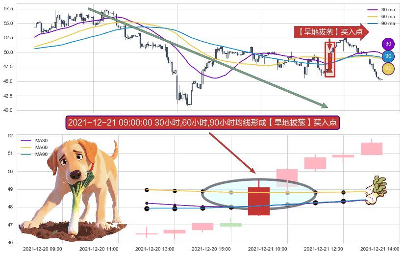 形态多维评估: ⚀ 2021-12-21 09:00:00小时显现 30小时-60小时-90小时均线 【旱地拔葱】买入点 看多信号,后市看涨,买入