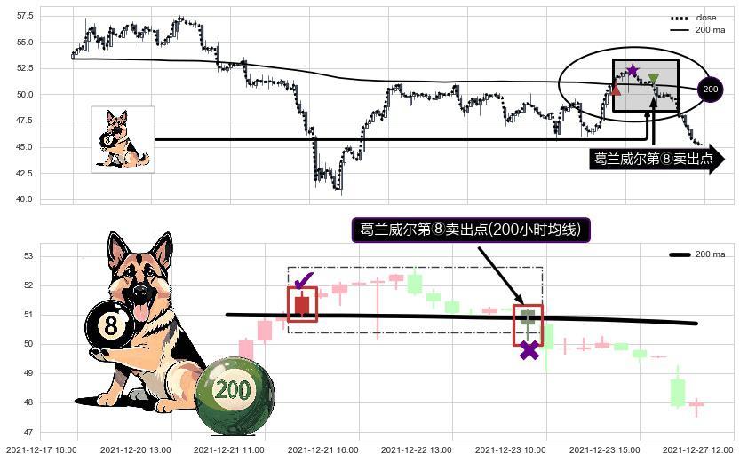 形态多维评估: ⚀ 2021-12-23 09:00:00-小时显现 葛兰威尔均线 200小时均线 第⑧卖出点 下降趋势的中继信号,后市看跌,卖出信号