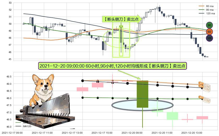 形态多维评估: ⚀ 2021-12-20 09:00:00小时显现 60小时-90小时-120小时均线 【断头铡刀】卖出点 看空信号,后市看跌,卖出