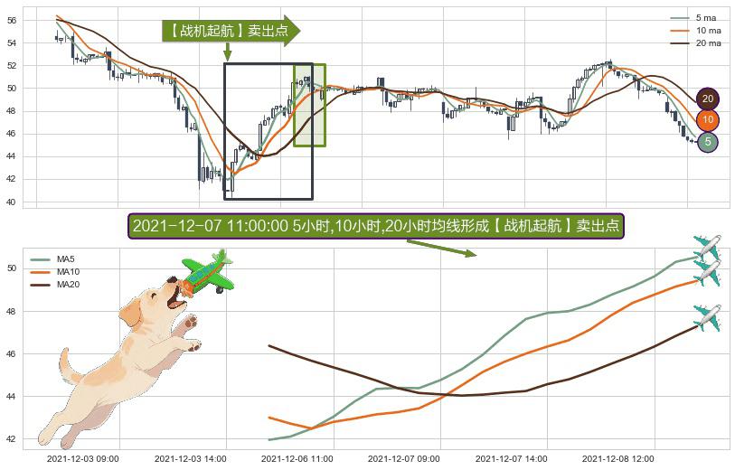 形态多维评估: ⚀ 2021-12-03 16:00:00小时-2021-12-08 14:00:00小时显现 5小时-10小时-20小时均线 【战机起航】卖出点 看空信号,后市看跌,卖出