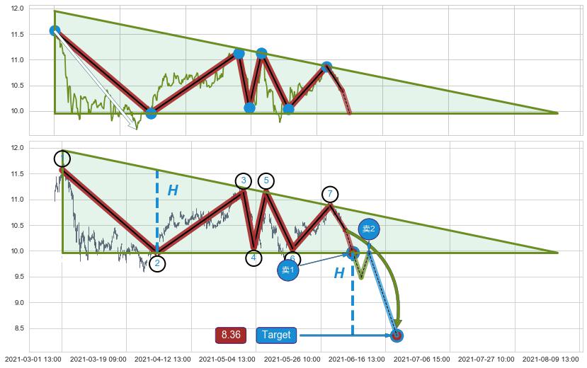 ➣ 最小中继整理跌幅→𝐇: 1.7300 (𝐇旗杆的长度:旗杆起点→顶点)