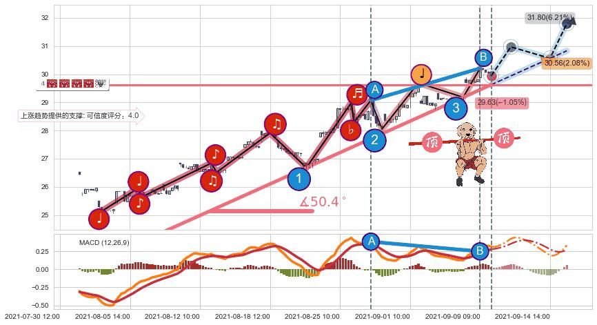 ➣ 预测:2021-09-14 14:00,【试探支撑】稳定目前上涨趋势的前提下,预测价格:30.56