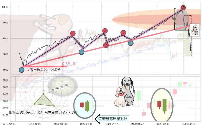 ➢ 🕰 价格走势在2020-02-20至2020-02-21期间形成吊颈线(上吊线),残存影响值:-2.22