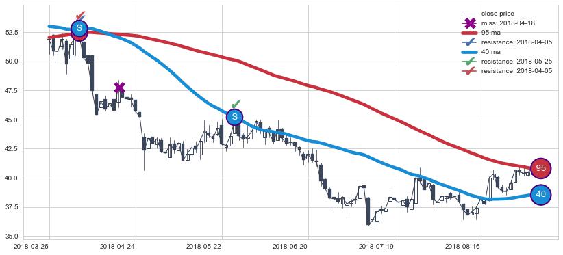 ➢ 最优均线组合共正确确认支撑阻力信号5处,正确确认率 71.43%