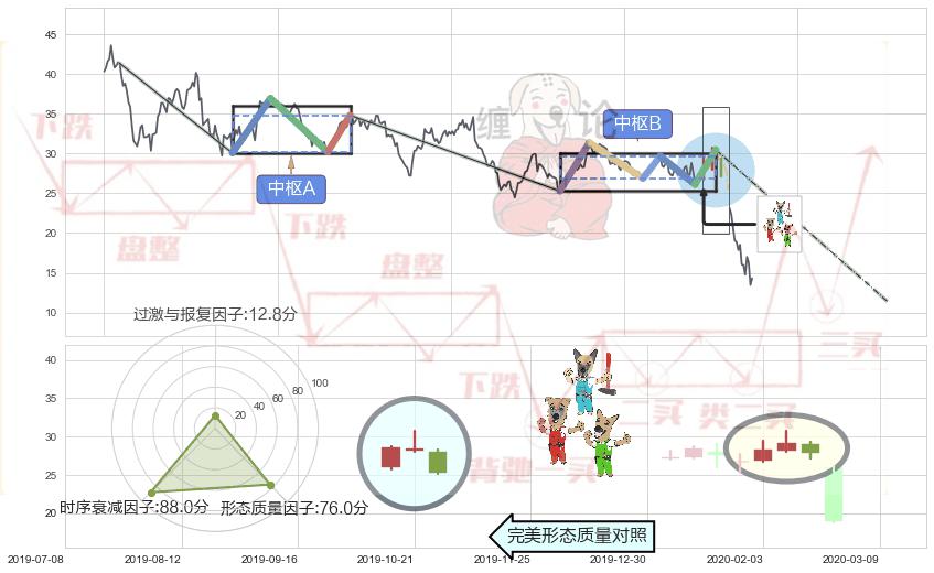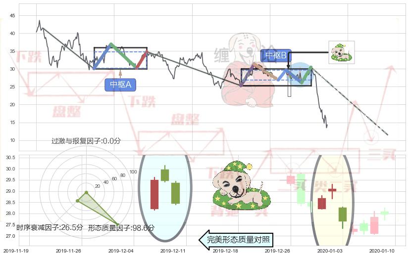 ➣ 下跌螺旋桨 + 缠论中枢点破位中枢B支撑下拉信号叠加后【目标达成率】中等,【看空】信号叠加【存续影响中等】