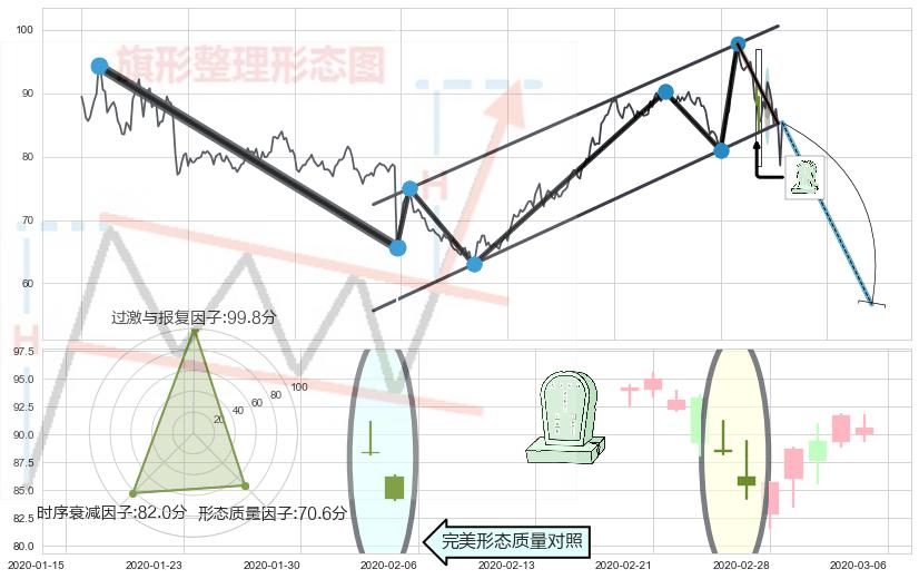 ➢ 墓碑十字线(墓碑线) 🔜 升旗形支撑破位转换阻力下跌 综合量化分数:37.88 【偏空】
