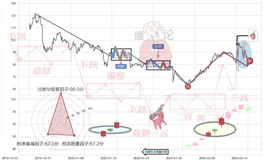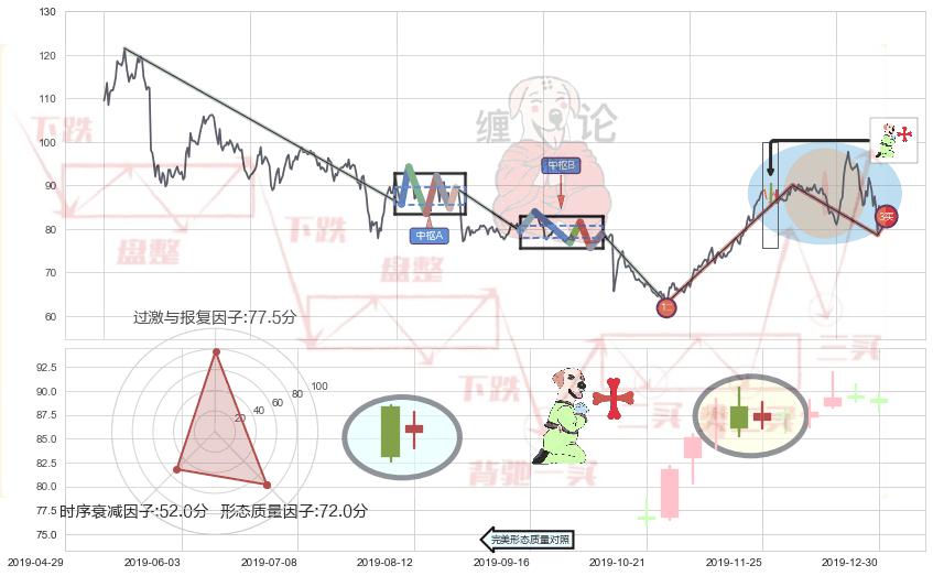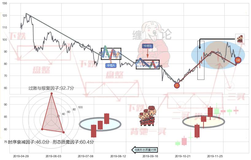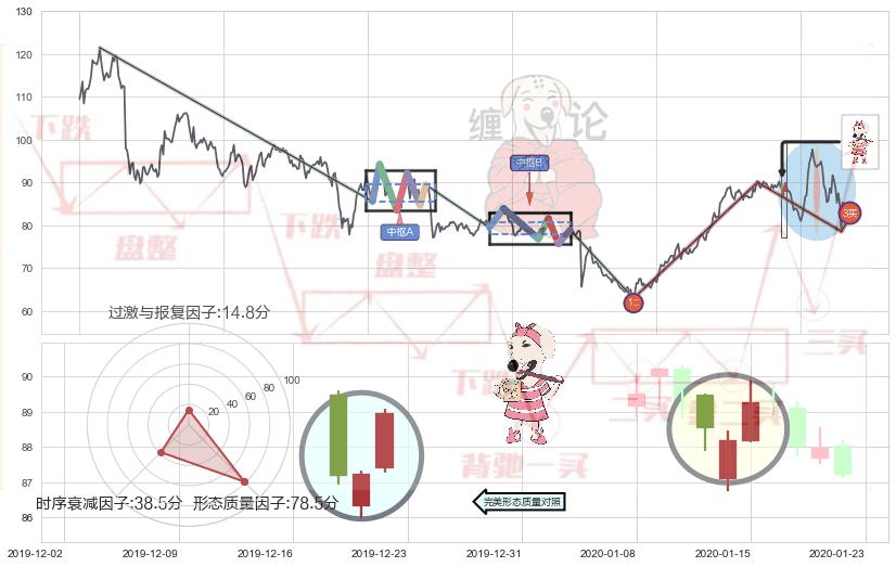 ➢ 【中枢A】:2018-11-23-2019-01-18,中枢由6笔构成,共38交易日, ZG=89.50, ZD=85.63