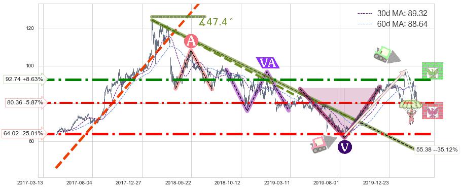 ♘ 阻力价格位92.74,可信任强度91.67%,距离最后交易2020-03-13形成的收盘价格85.37相差 +8.63%