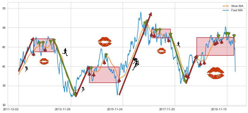 2012-06-29至2013-04-12 慢线与快线多次接触,存在上下穿越,有缠绕