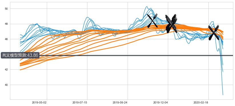 📉 多条均线基于【死叉历史模型】预测最低波谷价格的平均值: 43.86