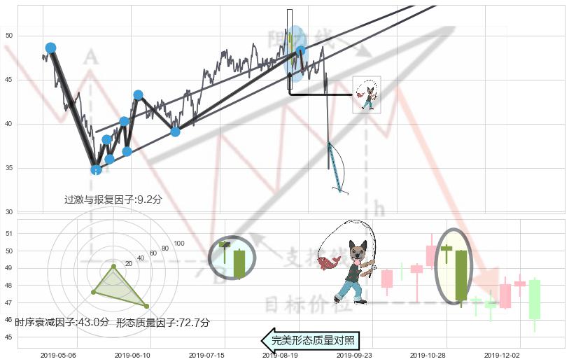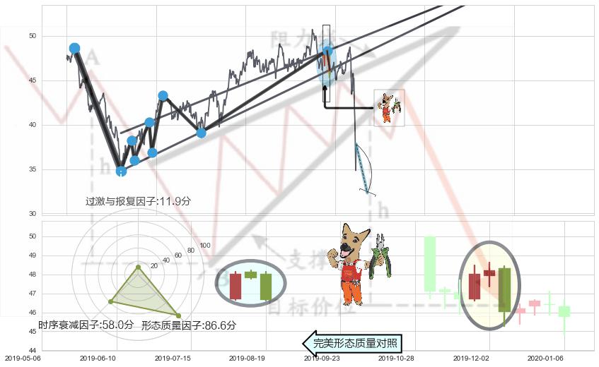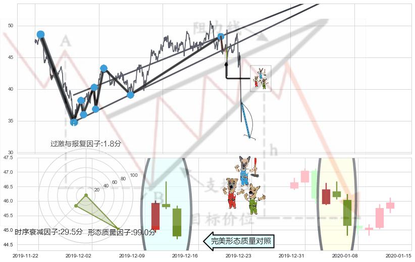 ➢ 【卖1】: 激进型 卖点→(2019-12-17: 46.16 )形成突破升🚩楔型【整理】形态