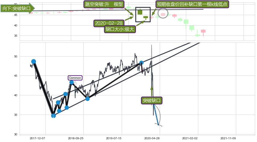 ➢ 2020-02-28形成:向下跳空【突破】缺口
