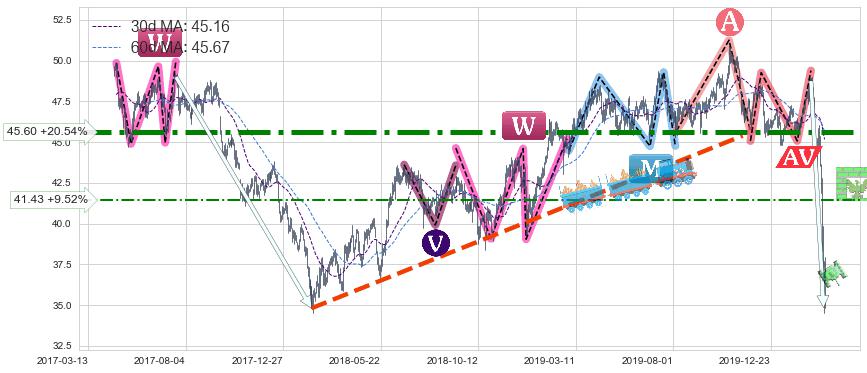 ➢ 2020-02-28到达第❶价格目标位置43.44