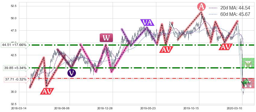 ♘ 阻力价格位39.85,可信任强度74.47%,距离最后交易2020-03-13形成的收盘价格37.83相差 +5.34%