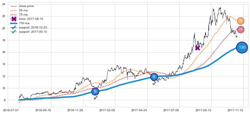 2016-07-07至2017-11-10 慢线与快线呈多头排列, 慢线与快线接触少,无缠绕