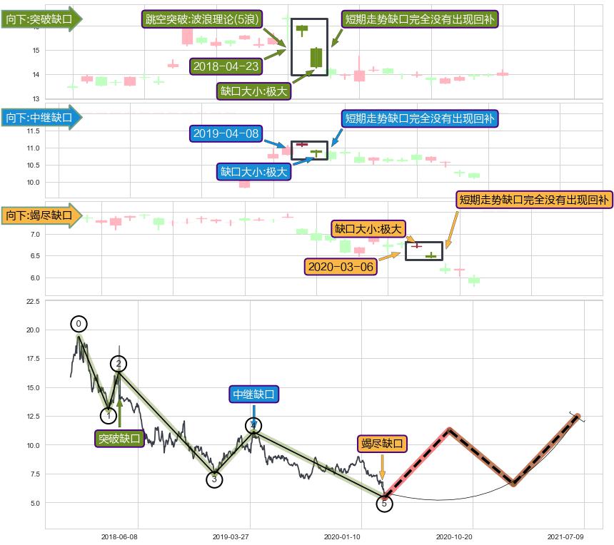 ➢ 2018-04-23形成:向下跳空【突破】缺口