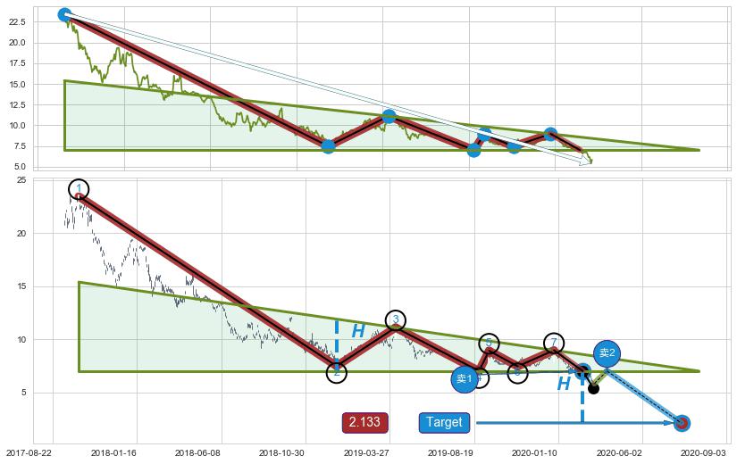 ➢ 【已确认突破】最后价格:5.85与最小【整理】第一目标价格→(2020-08-05: 2.133 )相较: 下跌空间【较大】