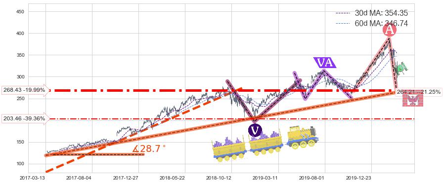 ♘ 支撑价格位268.43,可信任强度93.05%,距离最后交易2020-03-13形成的收盘价格335.50相差 -19.99%