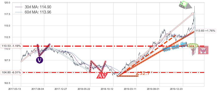 ♘ 支撑价格位110.53,可信任强度80.50%,距离最后交易2020-03-13形成的收盘价格111.86相差 -1.19%