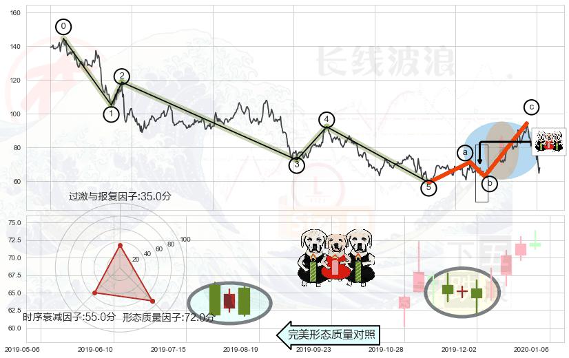 ➣ 调整浪已超过预测的c点位置,后续大趋势循环浪继续下跌概率58.35%,谨慎做多