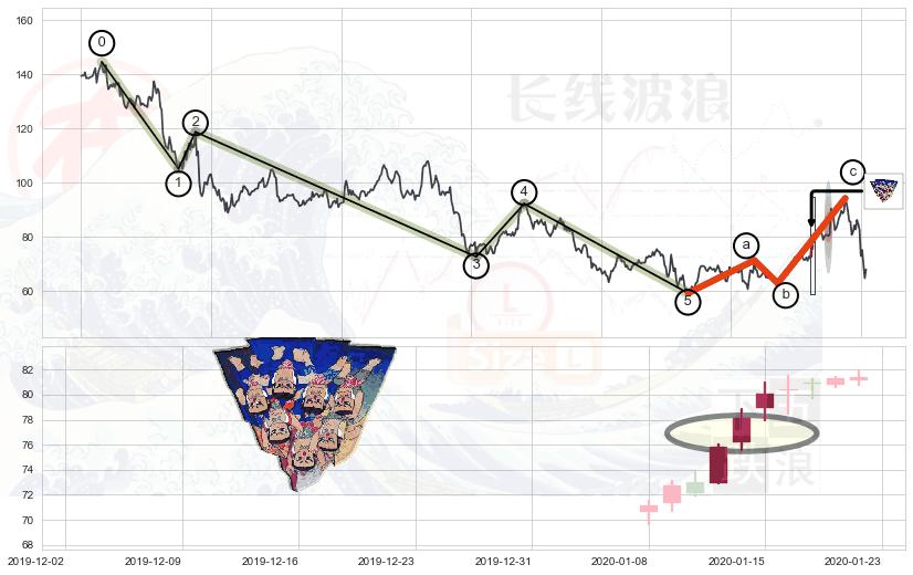➢ 波浪理论:猜想达到c点后小反弹终止反转下跌 → 下跌 → 【拐点】临近 → 阶段均值回复结束后继续大周期趋势跟踪