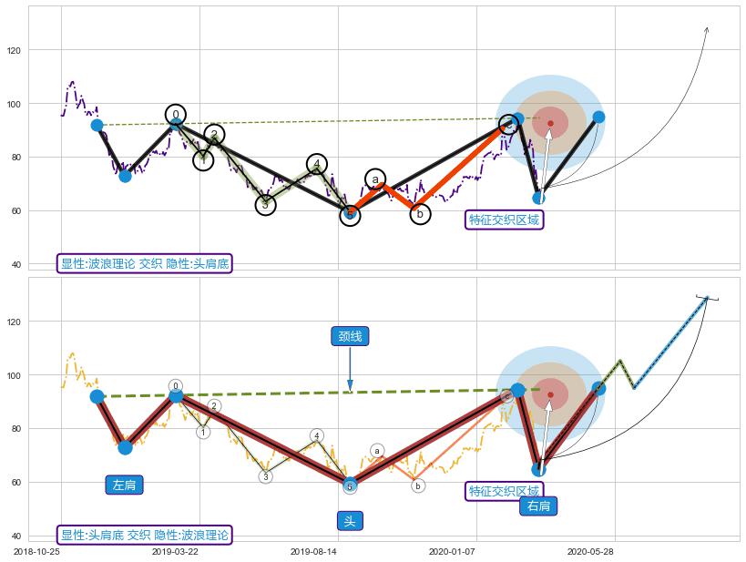 ➢ 波浪理论与头肩底信号事件周期长度级别相同,同周期信号事件