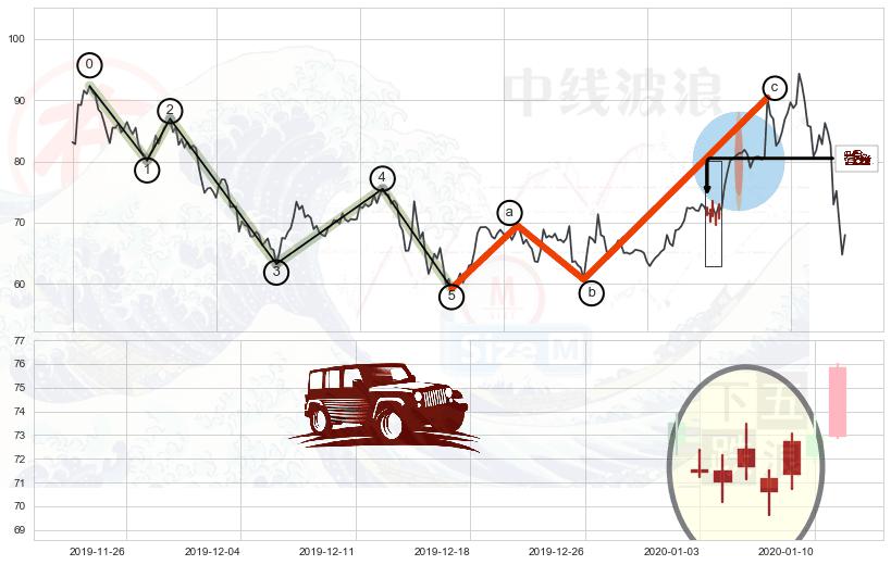 ➢ 波浪理论:猜想击穿突破c点后继续上涨 → 上涨 → 机会信号 → 小趋势跟踪