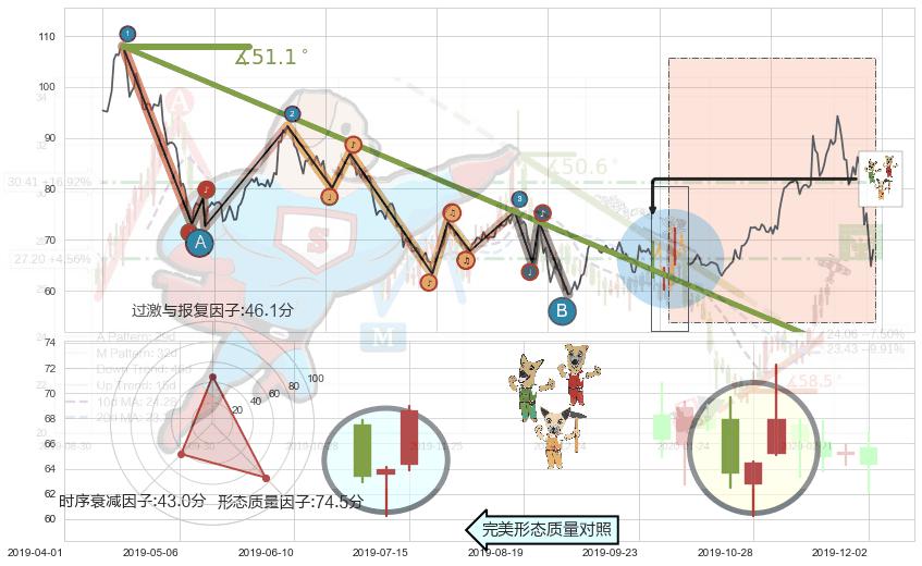 从2018-11-07至2019-09-27,共包含223个交易日,阶段股价下跌-40.36%,阶段股价变动位移路程比: 1 : 9,下跌趋势角度: 51.1