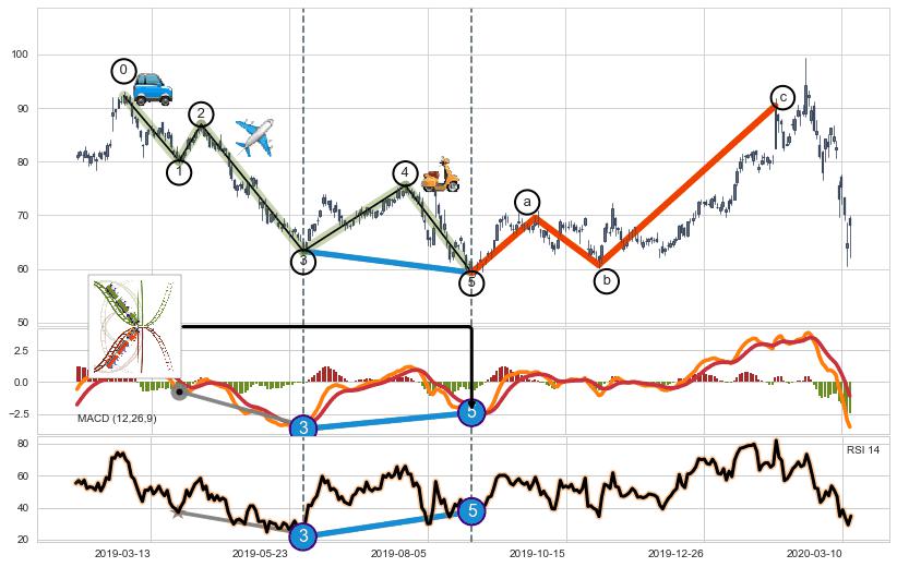 ➢ 波浪理论:猜想达到c点后小反弹终止反转下跌 → 下跌 → 【拐点】临近 → 阶段均值回复结束后继续大周期趋势跟踪