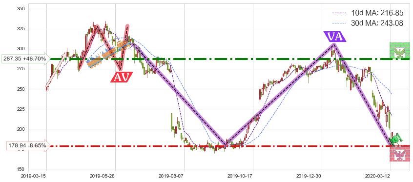 ♘ 支撑价格位178.94,可信任强度58.05%,距离最后交易2020-03-13形成的收盘价格195.88相差 -8.65%