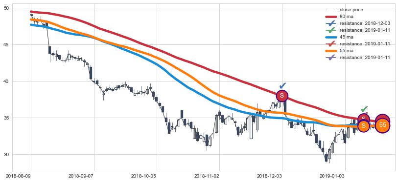 📝 多条均线形成死叉后走势最低价格达到: 45.11